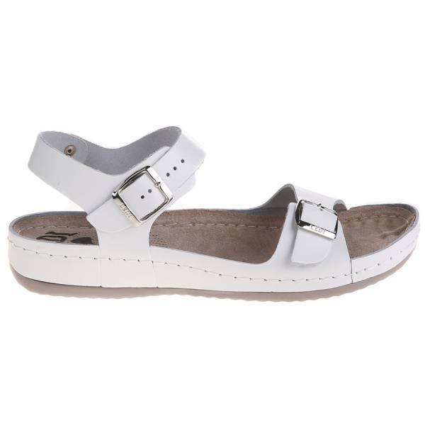 Дамски анатомичен сандал, бял цвят , на велуризиран табан,който не позволява приплъзване на крака вследствие на изпотяване, на олекотено полиуретаново ходилo с височина 2см.