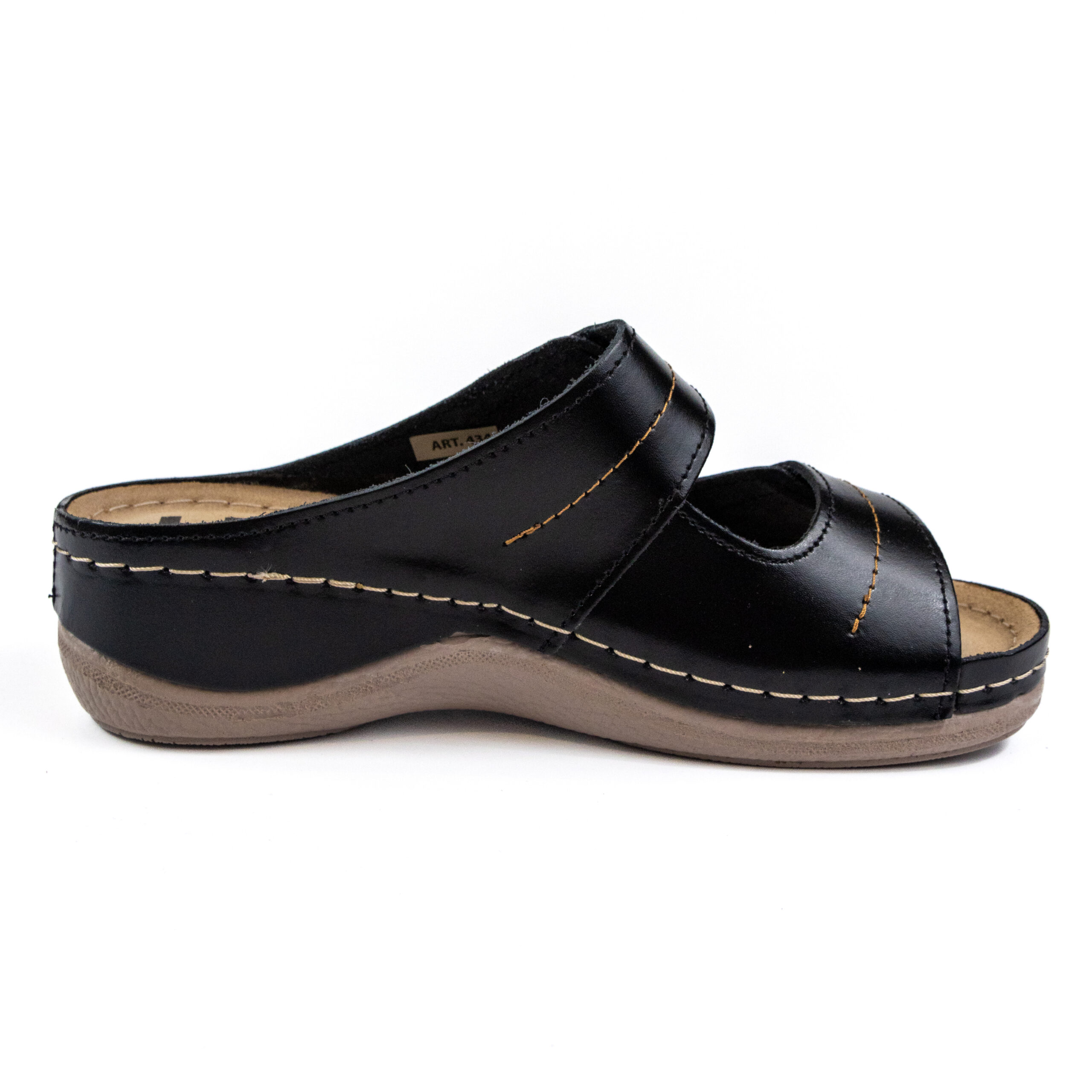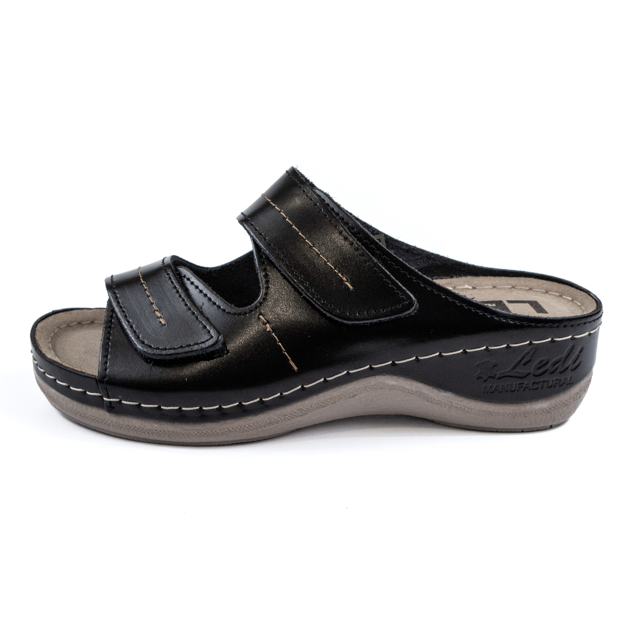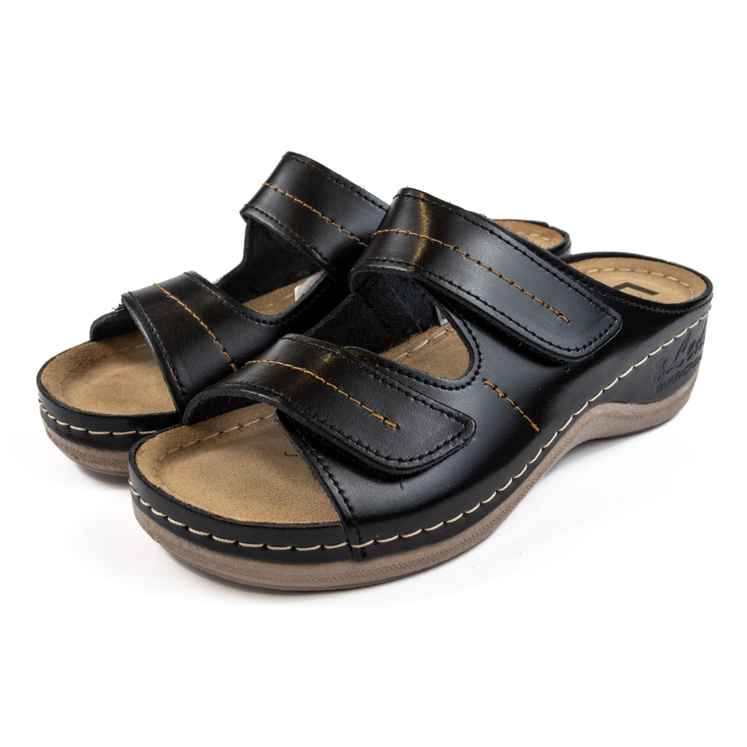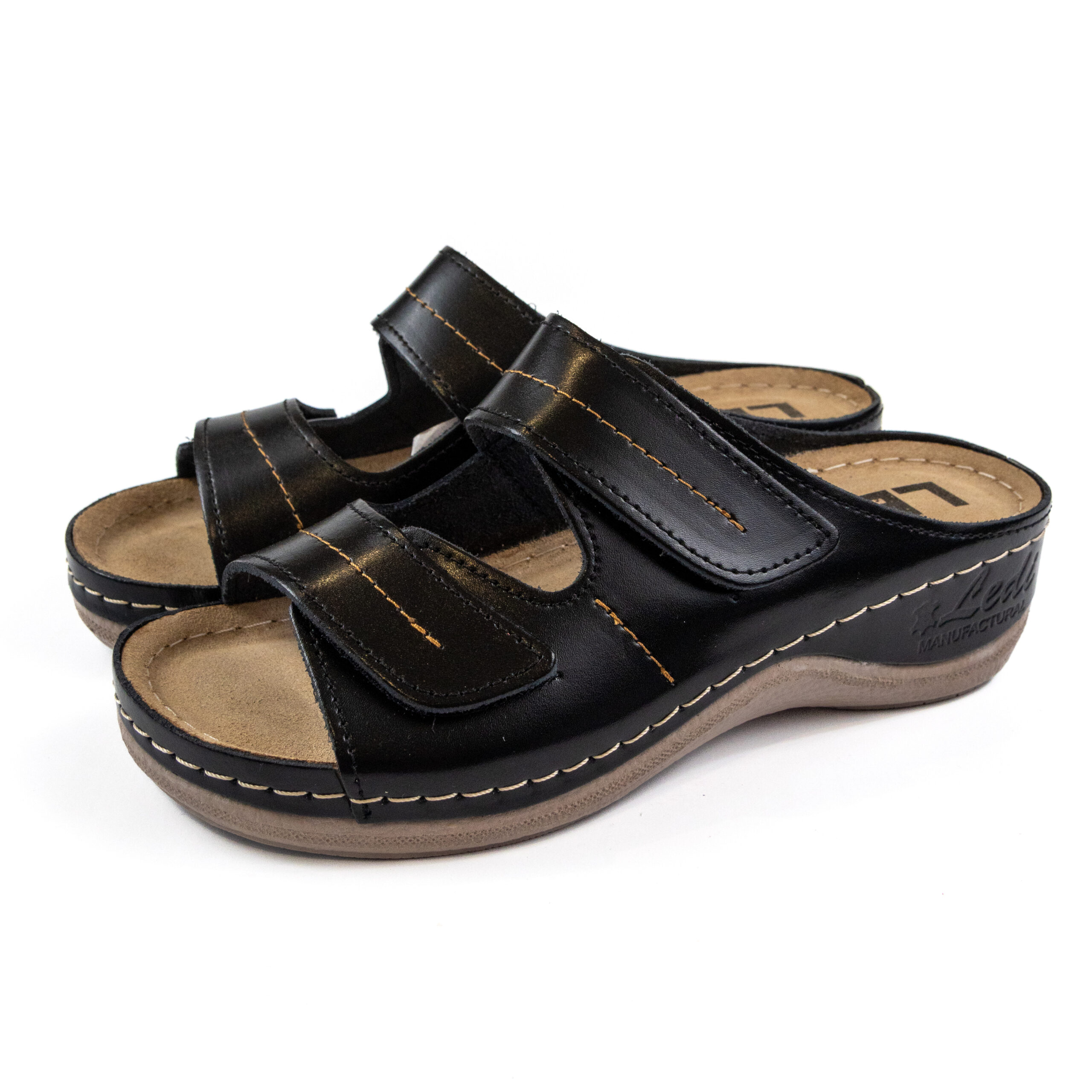 Дамско анатомични чехли, естествена кожа, черен цвят, табанът е средна твърдост - SOFT, на олекотено полиуретаново ходилo с височина 5см. и Anti Shock вложка против приплъзване.