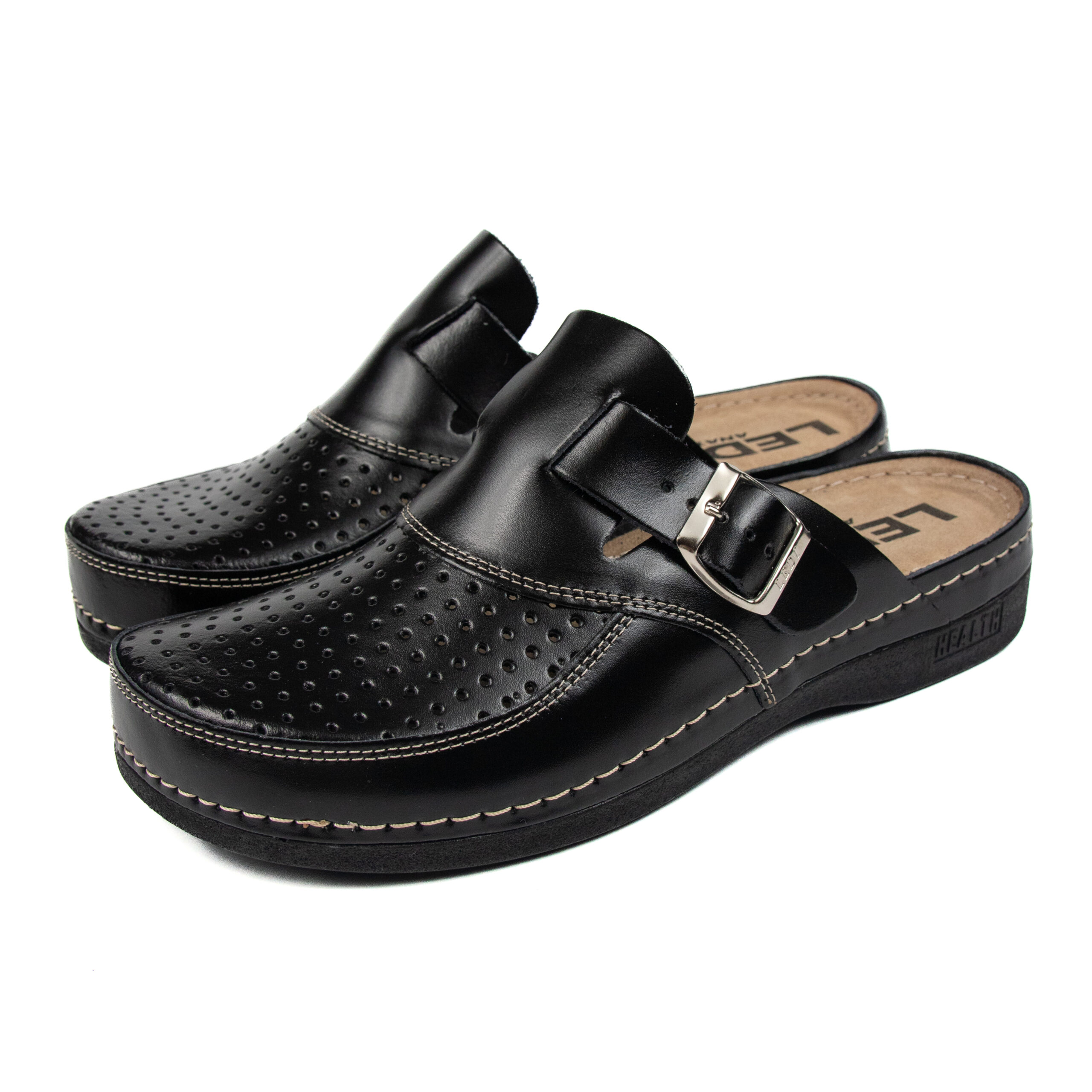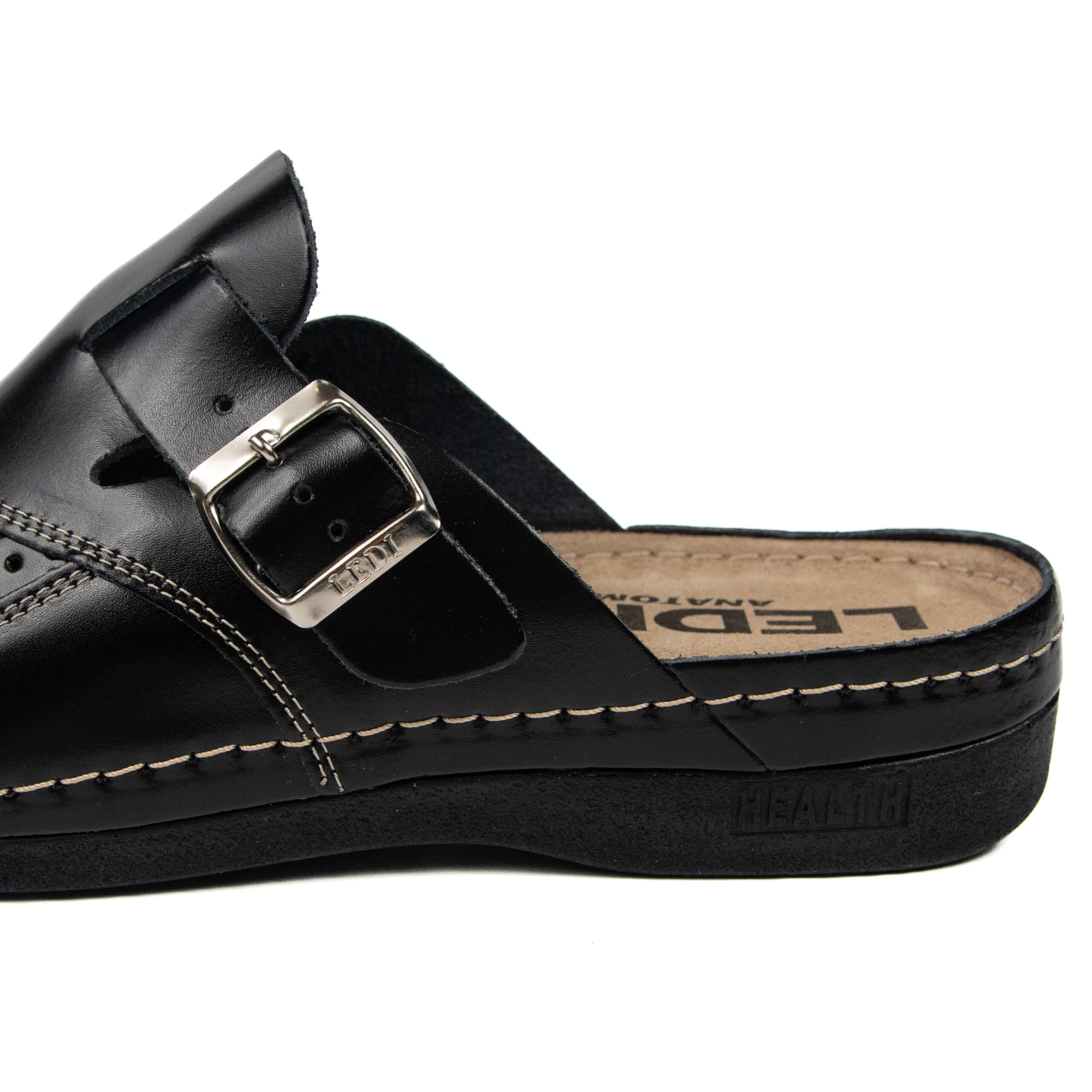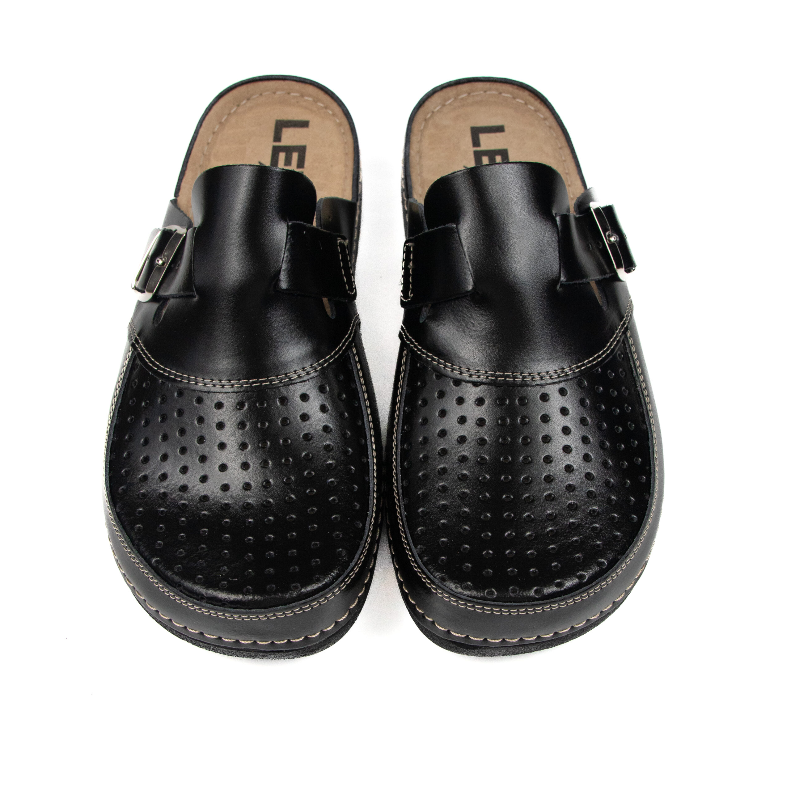 Мъжко анатомично сабо, естествена кожа, черен цвят , на мек пено-латексов табан,заемащ формата на стъпалото, на олекотено полиуретаново ходилo с височина 3см.