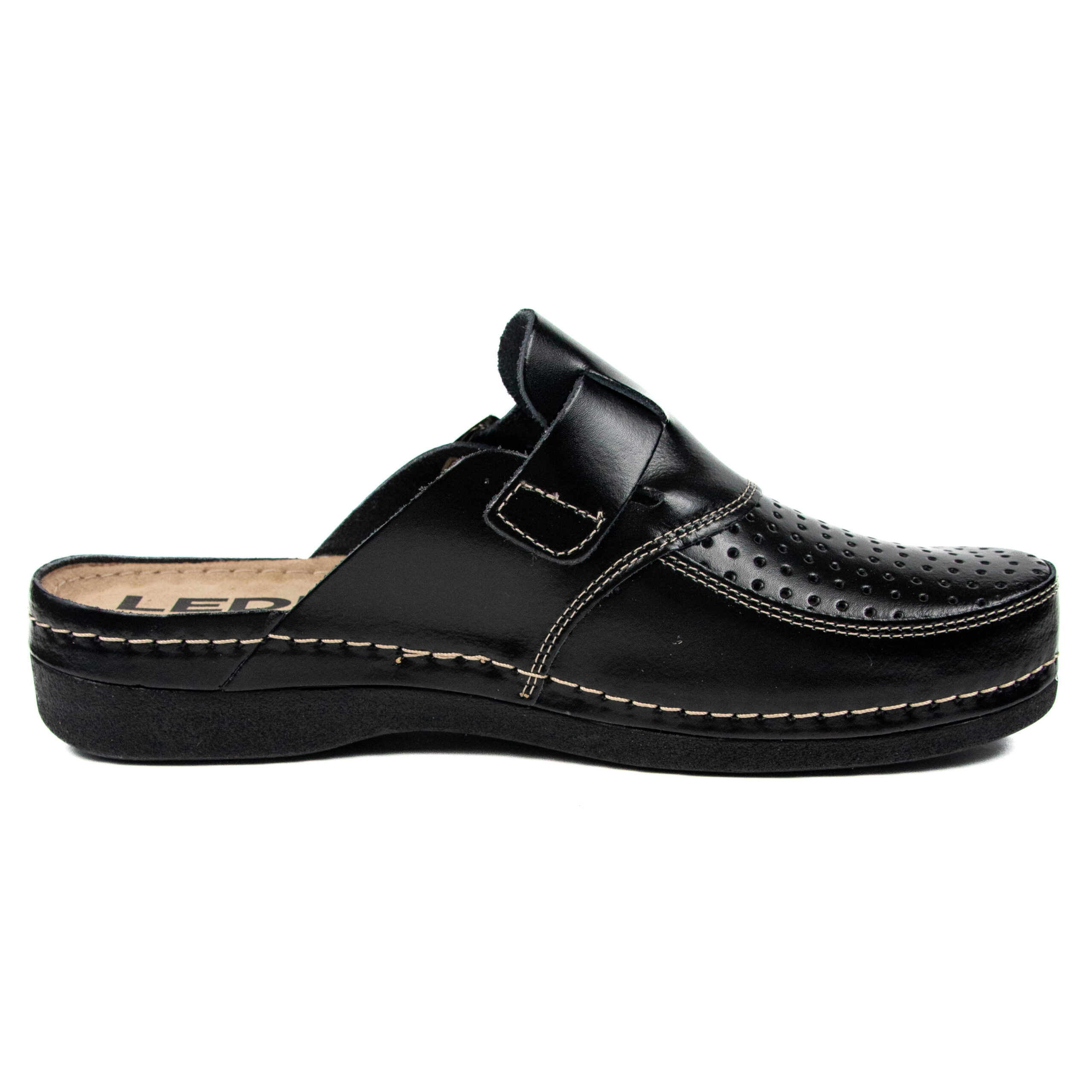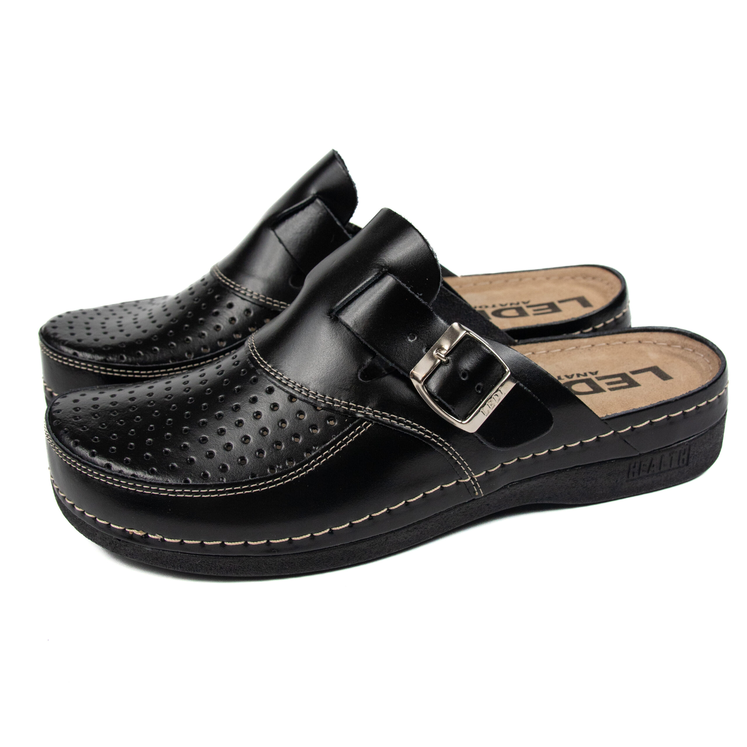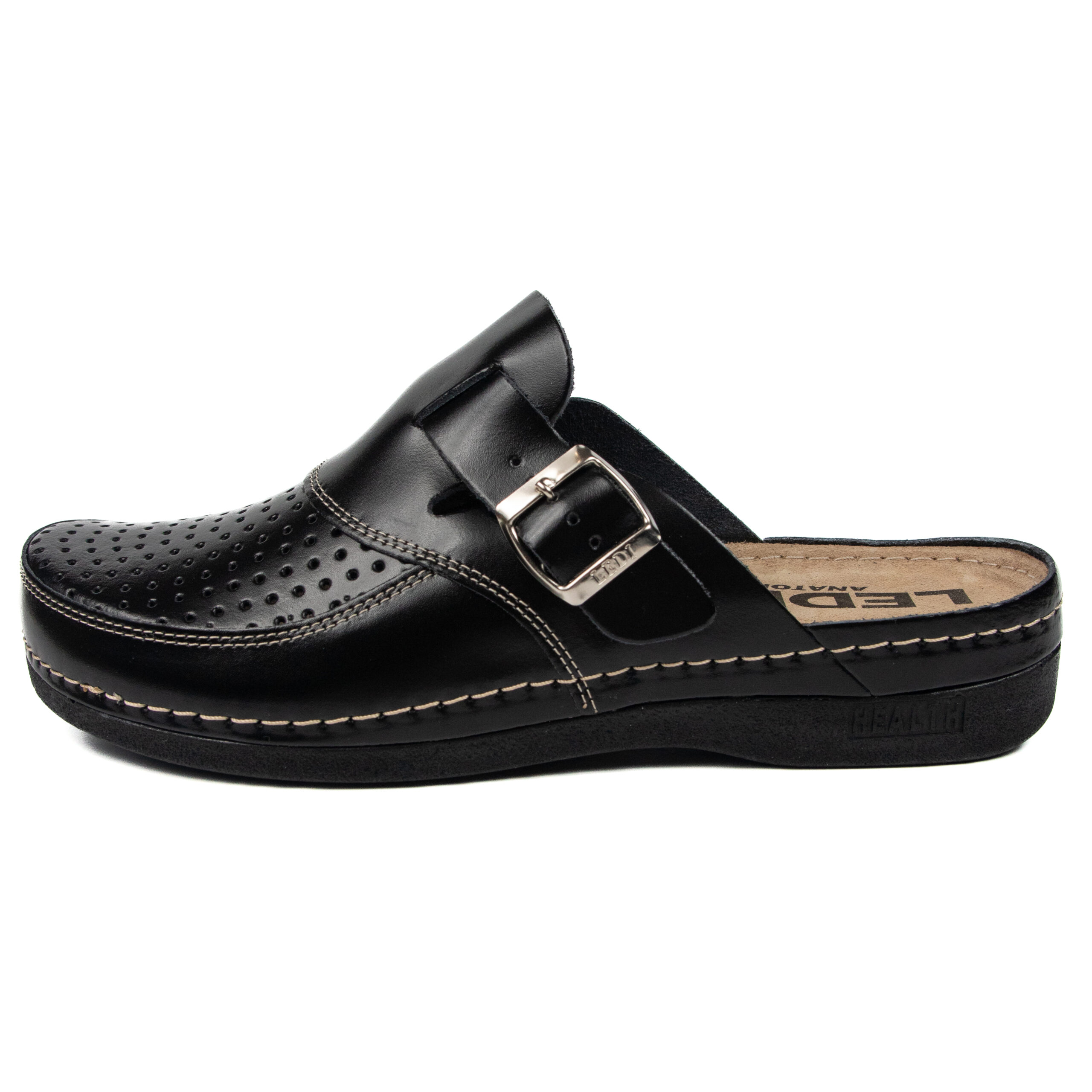 Мъжко анатомично сабо, естествена кожа, черен цвят , на мек пено-латексов табан,заемащ формата на стъпалото, на олекотено полиуретаново ходилo с височина 3см.