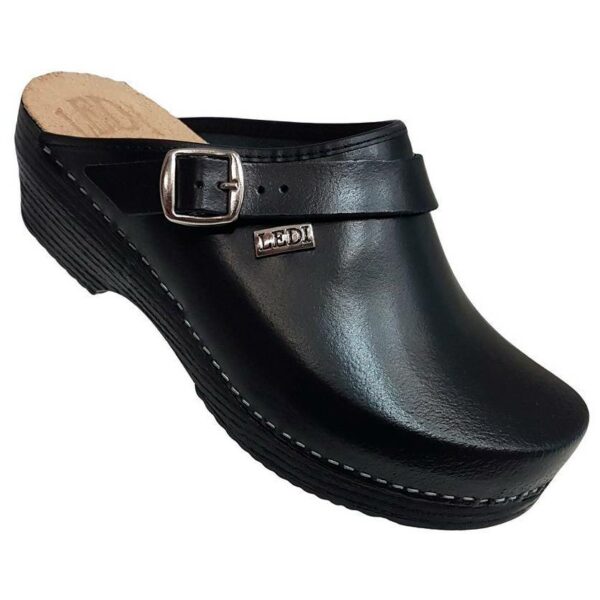 Мъжко ортопедично сабо, естествена кожа, черен цвят, на твърд табан, принуждаващ стъпалото да заема определената от ходилото извивка, на олекотено полиуретаново ходило с височина 5см.